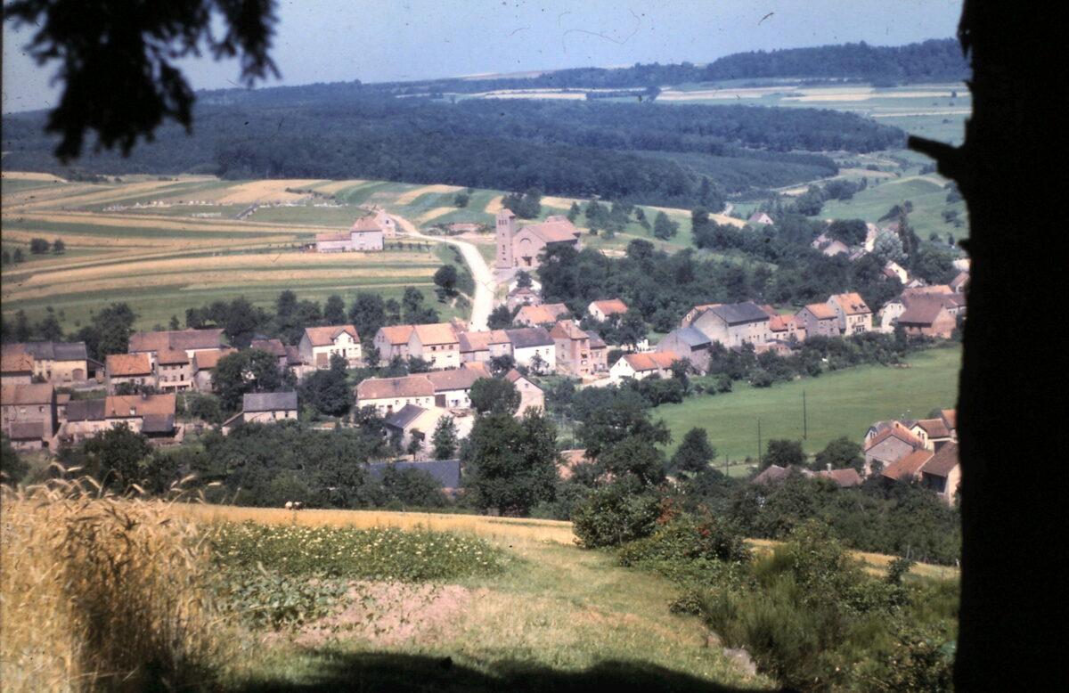 Dieses Foto stammt aus dem Jahre 1955. Wenn man das Bild vergrößert, erkennt man das Friedhofsgelände sehr gut. Auf diesem Gelände sind 4 bauliche Anlagen zu erkennen. Wer weiss, um was es sich da genau handelt?