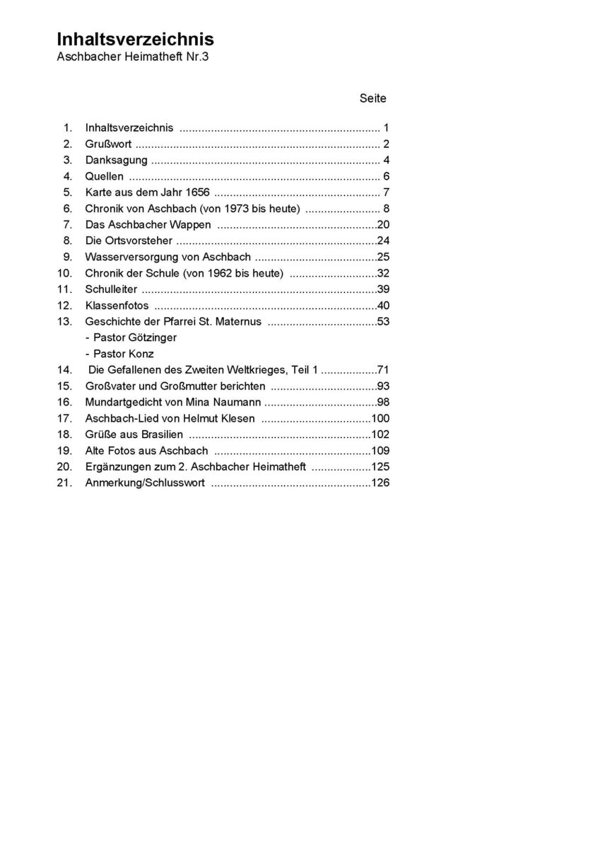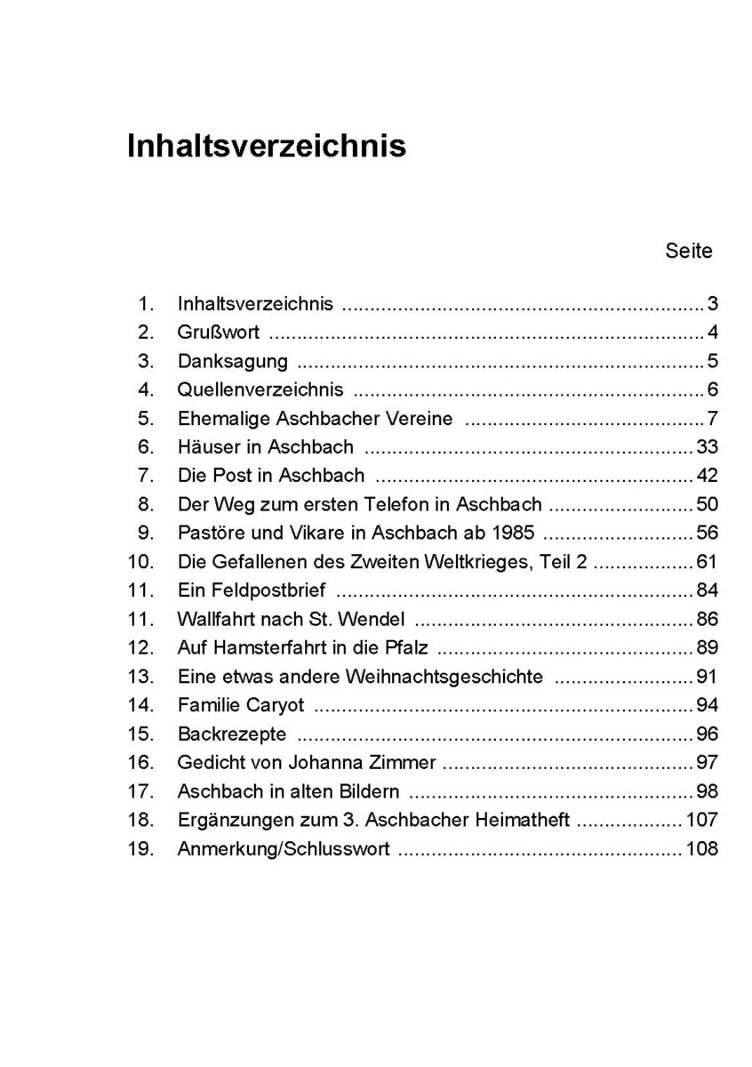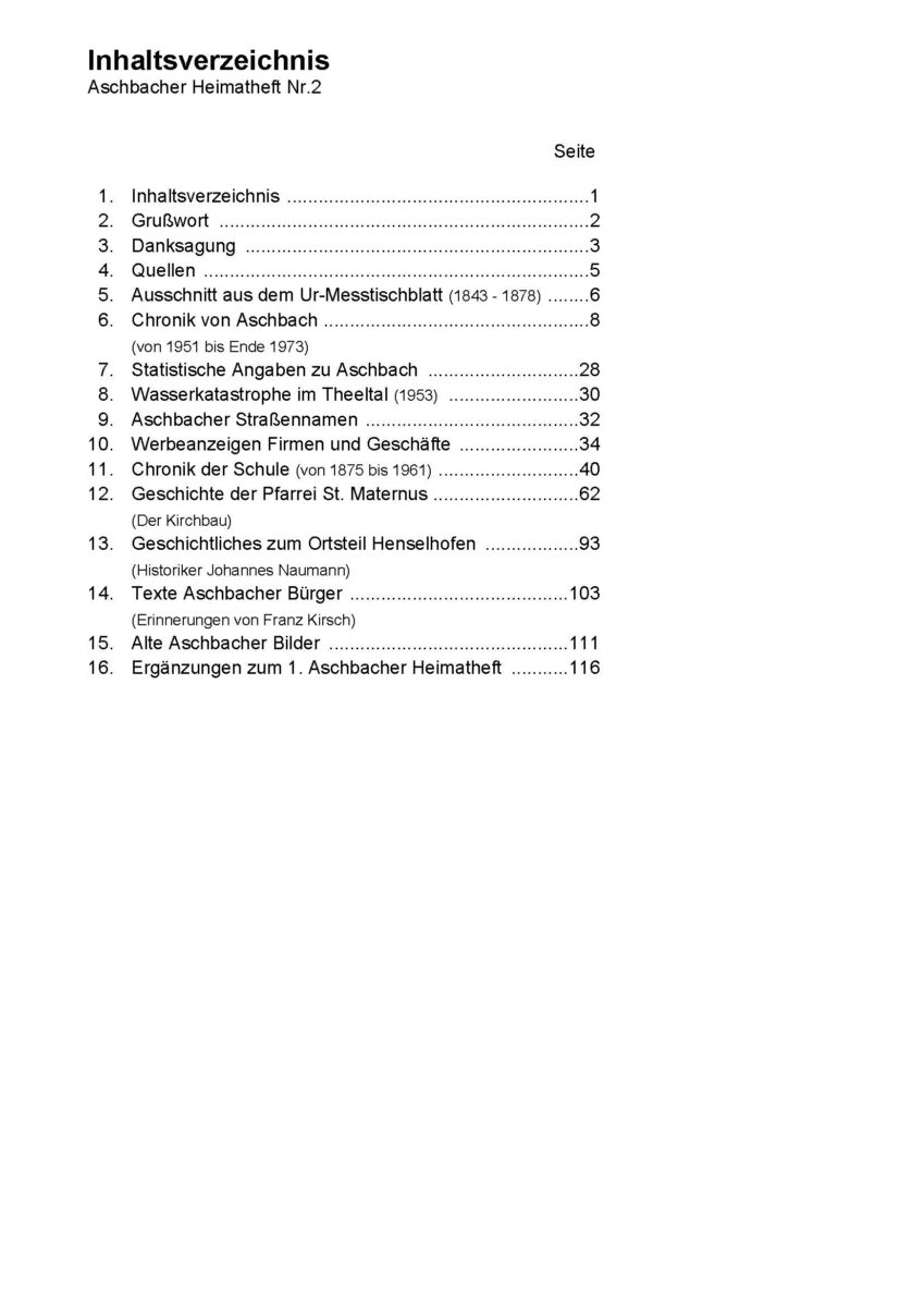 Vier Publikationen – die Aschbacher Heimathefte 1-4- sind bis heute erschienen. Das fünfte Heimatheft ist zur Zeit in Bearbeitung.